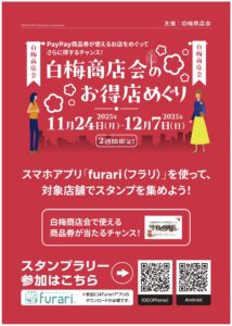 お食事やお買い物を楽しみながらスタンプを集めて、さらに白梅商店会で使える商品券が当たるチャンス!